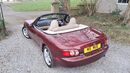 This 2003 Mazda MX5 1.8 Montana Mk2.5 is finished in Garnet Red with tan leather seats and trim has covered just 38500 miles from new and is an absolute beauty. Only 500 Montana models were made with 250 in Racing Green and 250 in Garnet Red. Its based on a standard 1.8 complete with 5-speed gearbox but has a few nice ‘extras’ fitted such as wood trim including Nardi steering wheel and gear knob in wood, heated leather seats, electric aerial, black mohair soft top and chrome interior door handles. It also has air conditioning, remote central locking, power steering, electric windows and mirrors, stereo with CD player, colour-matched tonneau cover and driver and passenger airbags. Its recently had substantial repairs to the sills all carried out to a good standard.